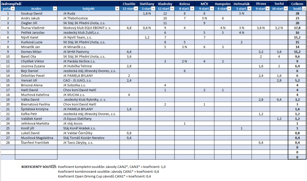 Přinášíme finální výsledky celého seriálu ČESKÉHO POHÁRU SPŘEŽENÍ pro rok 2025 dle jednotlivých kategorií: