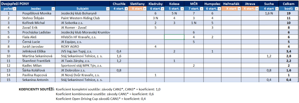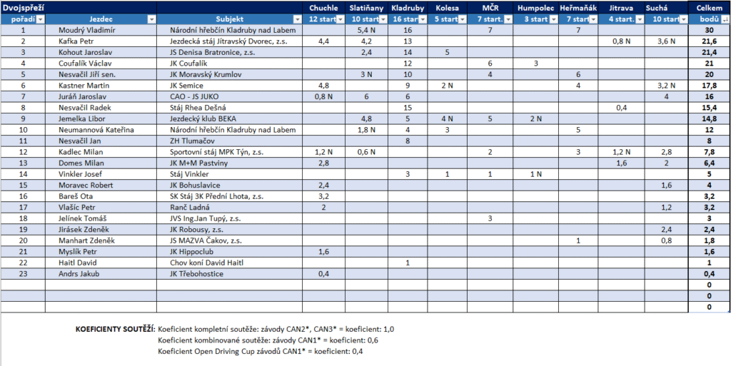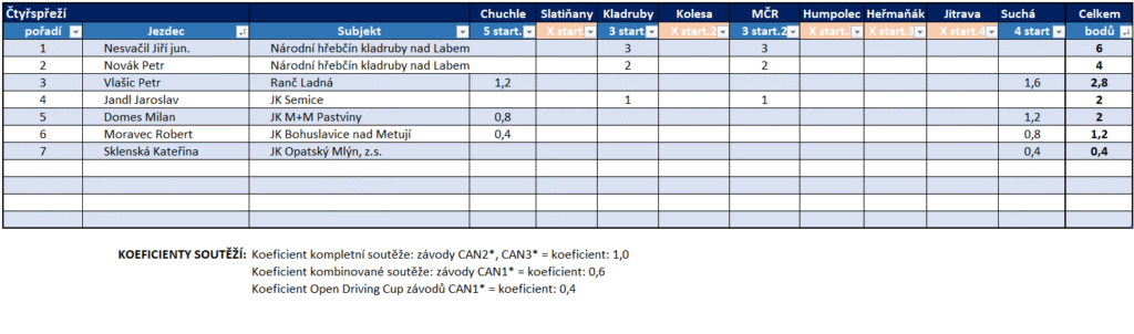 Výsledky poháru jsou spočítané dle „Pravidel pro Český pohár spřežení 2025“